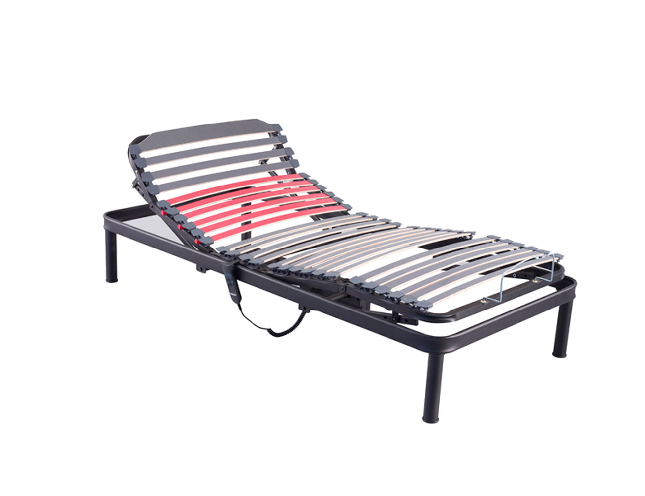 PVPR: 440,00 € 369,60 €Este somier articulado esta muy bien preparado para personas con una inmovilidad muy reducida, este somier articulado tiene una estructura con un marco exterior de tubo de acero doble oval y el marco interior de tubo de acero de 30x30 mm, tipo de laminas en madera, tiene 5 funciones de motor, la función de la laminas es sobre taco basculante silencioso.