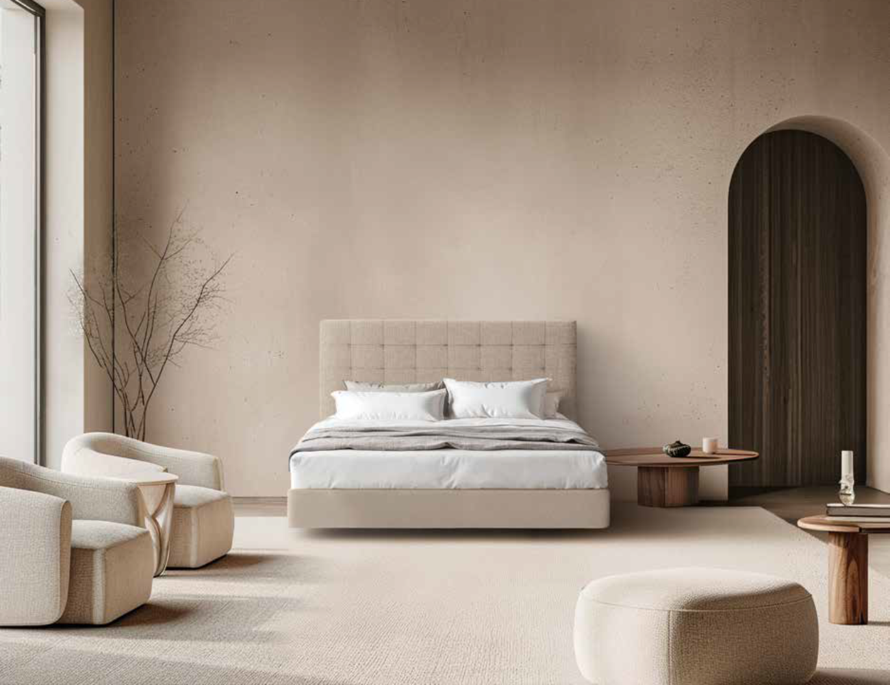 ACCEDERCabecero tapizado con estructura en DM + poliestireno expandido en parte central. Acolchado a cuadros con tiro (opción botones capitoné al mismo precio). Este cabecero puede tapizarse tanto en tejido como en polipiel.