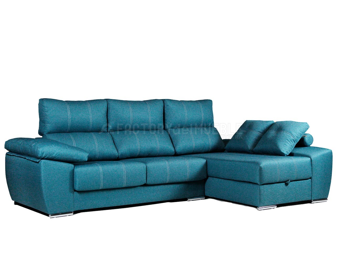 Opcionalmente se le puede añadir arcón debajo del asiento del chaiselongue y poder elegir el color del pespunte para ser a tono o contrastado.