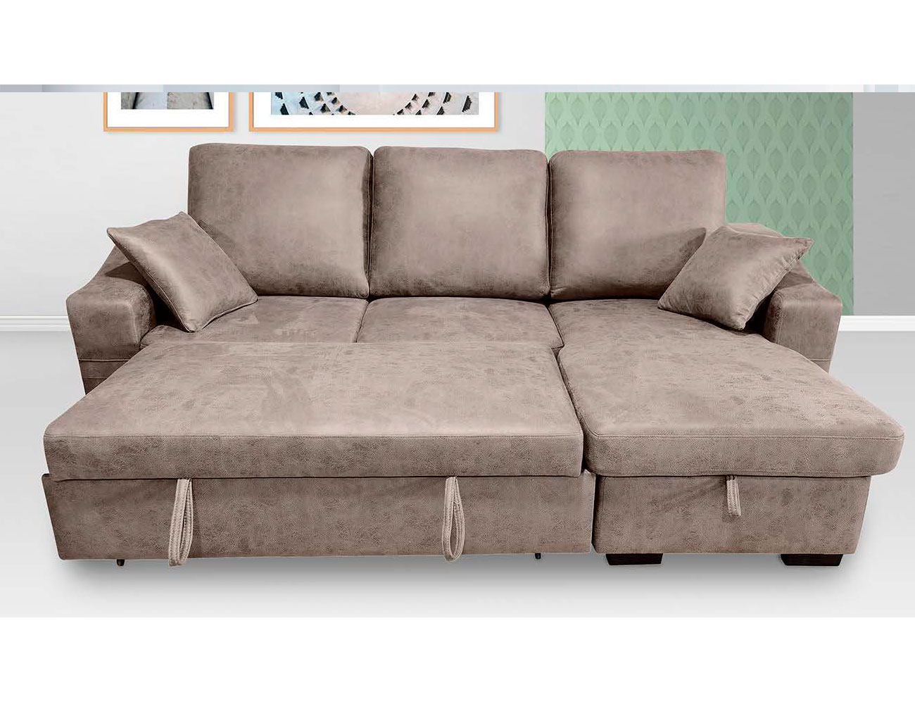 PVPR: 1198,00 € 599,00 €CARACTERÍSTICAS:- Shaiselongue convertible en cama.- Arcón.- Estructura de madera.- Asientos de muelle y espuma.- Mecanismo metálico.- Preparada para montaje derecha o izquierda.