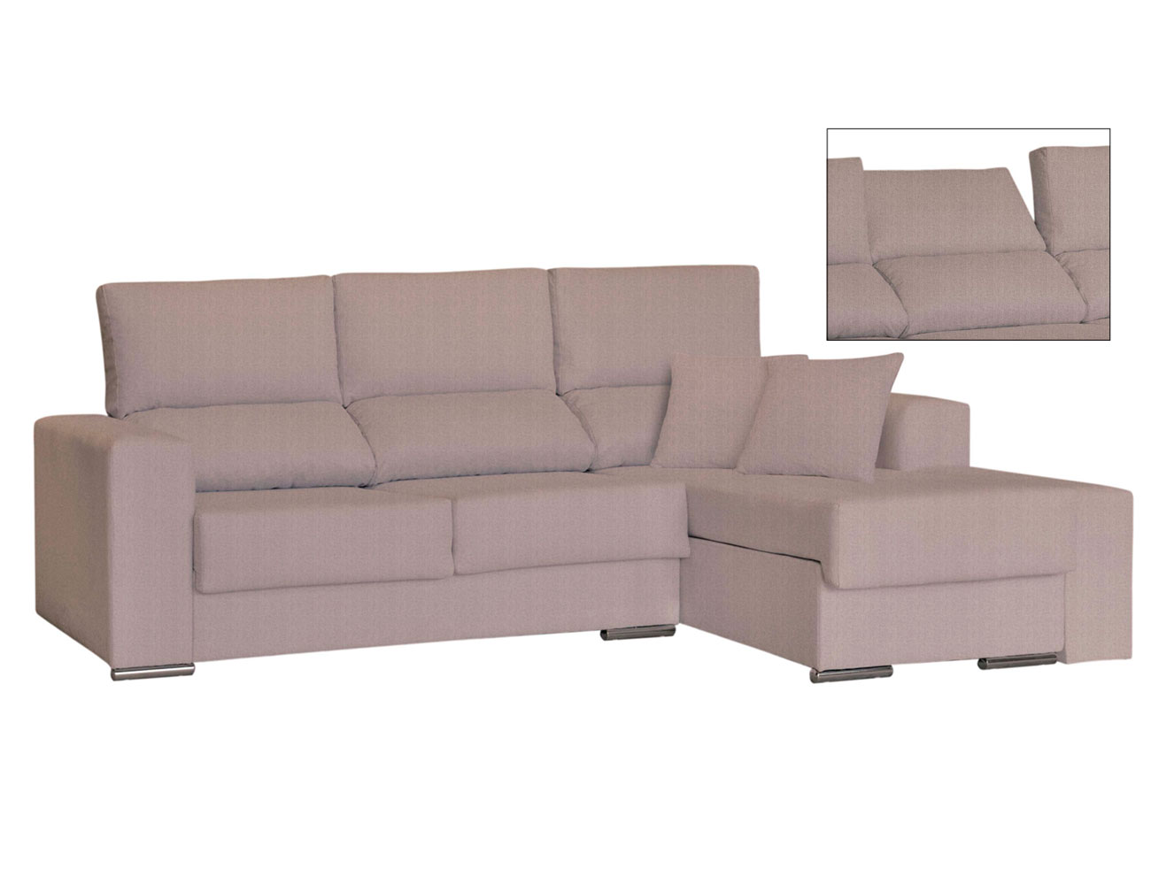 PVPR: 498,75 € 399,00 €CARACTERÍSTICAS- Respaldos riñoneras y brazos en copos de poliuretano.- Estructura de madera de pino.- Asientos de espuma HR.- Brazo corto de 20 cm recto, sin almohadilla.- Brazo largo recto de 20 cm ancho x 55 cm altura x 80,5 cm fondo con pouf (20x60 cm) delante del brazo.- Patas metálicas cilindricas de 3,5 cm.- Respaldos reclinables y asientos fijos.- Arcón en el módulo shaiselongue.- Incluye 2 cojines decorativos.