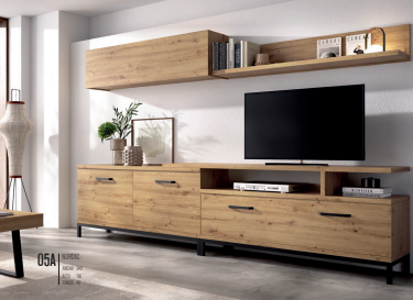 PVPR: 40,00 € 652,52 €La composición Salón Nórdico 05a es una solución de diseño moderno que maximiza la sensación de amplitud. Con 260 cm de ancho, este salón se presenta en un acabado monocromático Nordic (madera clara) que aporta calidez sin renunciar a la luminosidad. Su estética horizontal se refuerza con un módulo superior y balda flotante y una base metálica negra que eleva el mueble TV, creando un ambiente acogedor y vanguardista.