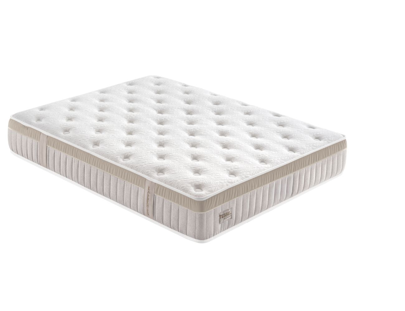 El colchón TESSEL es un producto de la línea PREMIUM TITANIUM PRO diseñado para ofrecer un descanso adaptable y de alta calidad. Combina la tecnología de muelle ensacado Titanium Pro (250 muelles/m² en el núcleo) con capas de Visco Carbono y Visco Gel para una acogida suave y termorreguladora. El Visco Carbono ayuda a disipar la humedad y el Visco Gel proporciona frescor. Su acolchado superior e inferior, junto con sus refuerzos perimetrales, garantizan una durabilidad prolongada y un soporte estable en todo el lecho.