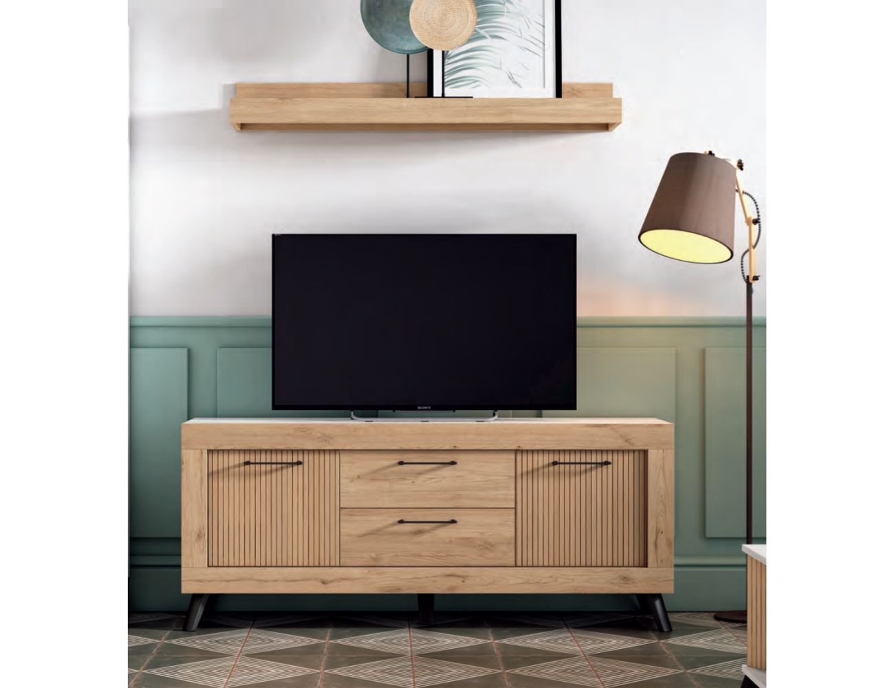PVPR: 444,52 € 266,71 €Este mueble bajo de TV proyecta una sensación de equilibrio moderno y calidez orgánica. Es una pieza que logra sentirse "de tendencia" sin perder la comodidad de lo clásico.