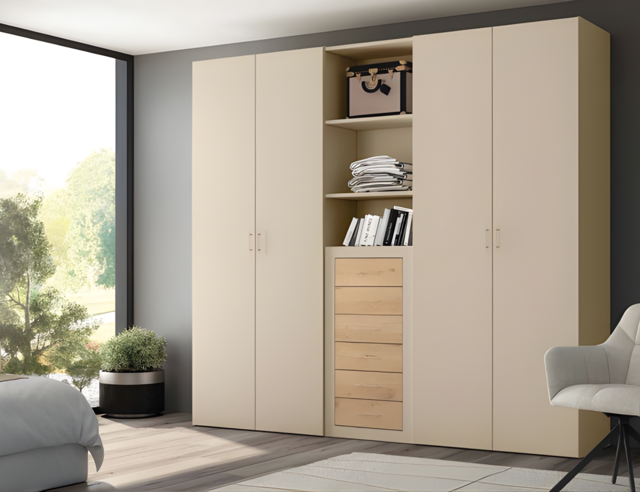 • Tablero de partículas melaminizado de 15mm para frentes, costados, módulos y partidores, con cantos aplacados en P.V.C