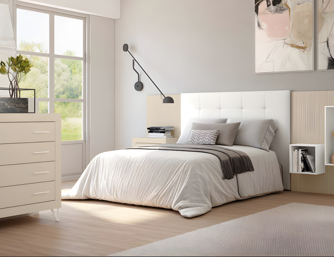 Dormitorio Jordán en Perla/Lined Perla/Soul Blanco/Polipiel Blanco