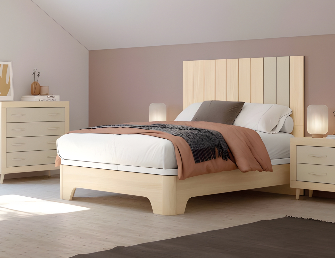 PVPR: 2349,14 € 1409,48 €Este dormitorio es de estilo moderno, combina cabeceros de varios estilos. Los muebles, como las mesitas, cómodas o sinfonieres están disponibles con patas y sin patas.
