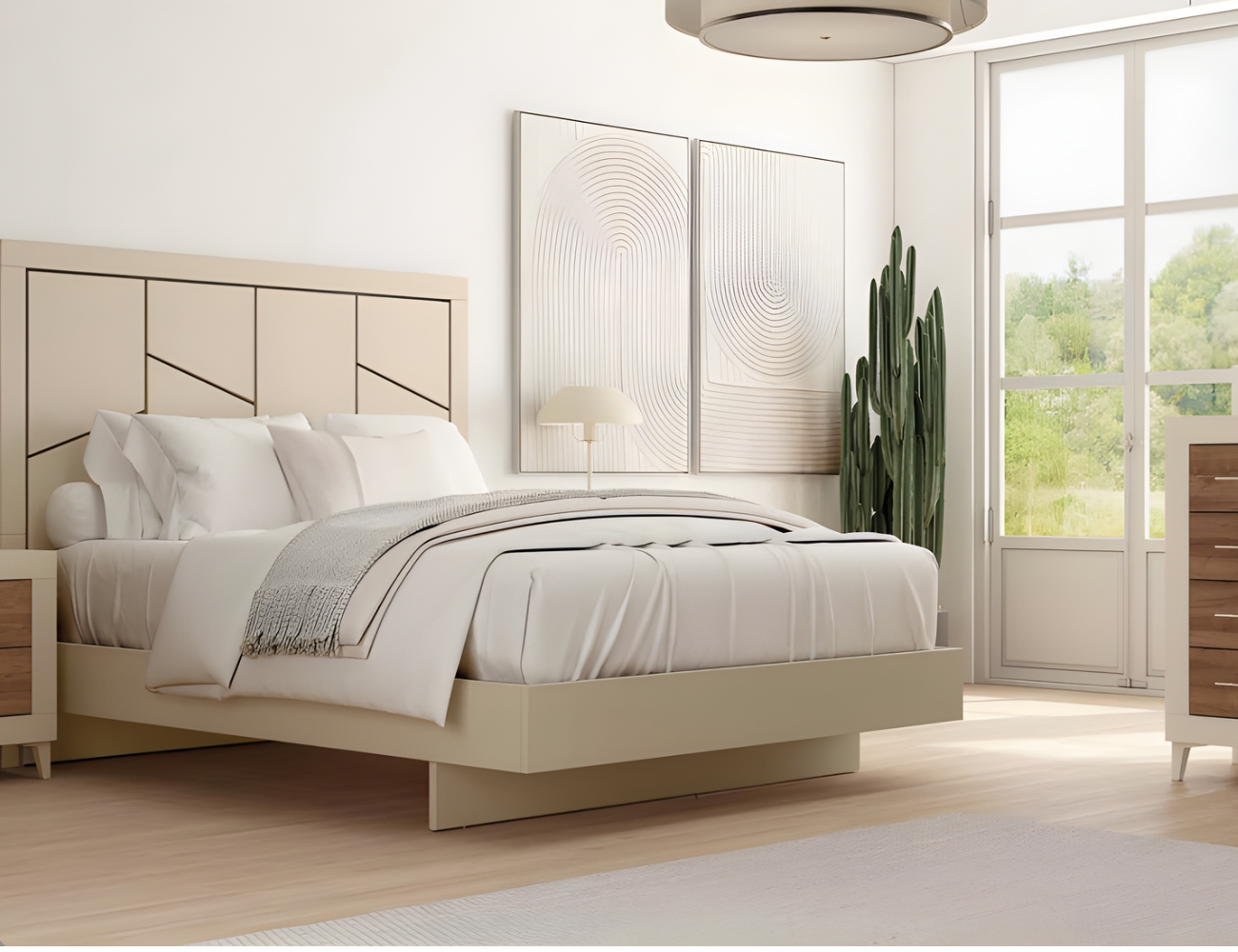 PVPR: 1614,36 € 968,62 €Este dormitorio es de estilo moderno, combina cabeceros de varios estilos. Los muebles, como las mesitas, cómodas o sinfonieres están disponibles con patas y sin patas.
