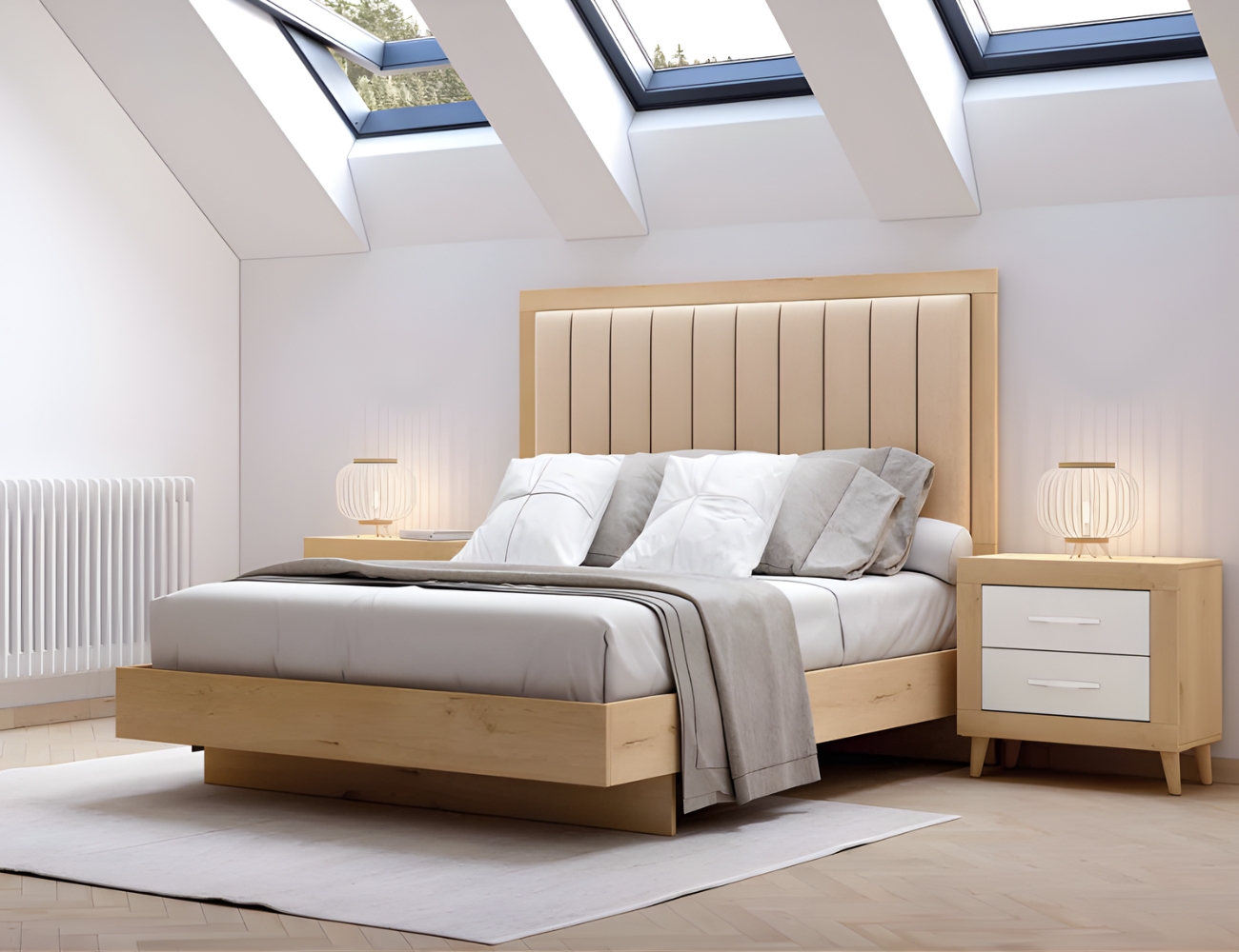 PVPR: 1217,48 € 730,49 €Este dormitorio es de estilo moderno, combina cabeceros de varios estilos. Los muebles, como las mesitas, cómodas o sinfonieres están disponibles con patas y sin patas.