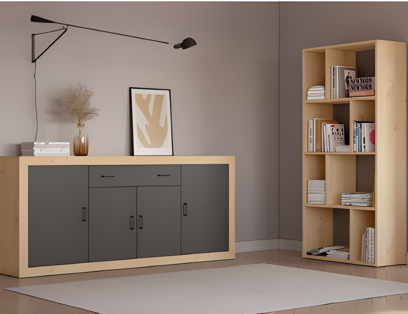 Los muebles de pino tienen pros y contras. El pino es muy empleado en carpintería porque es fácil de trabajar. Es de estilo rústico y se puede decapar, teñir o encerar. Es aplicado a mobiliario juvenil de un alto nivel de precio. Como es una madera blanda es más propensa a arañazos que puedes frotar con ajo o cera para disimular. La madera de Pino también es muy utilizada para la realización de marcos para muebles modernos de salón o dormitorios.
