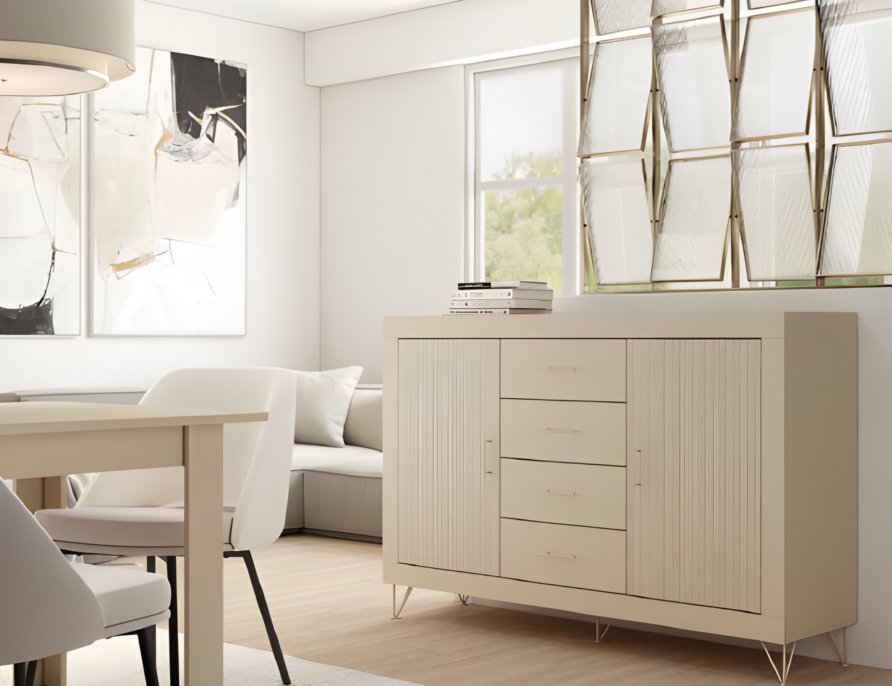 • Tablero de partículas melaminizado de 15mm para frentes, costados, módulos y partidores, con cantos aplacados en P.V.C
