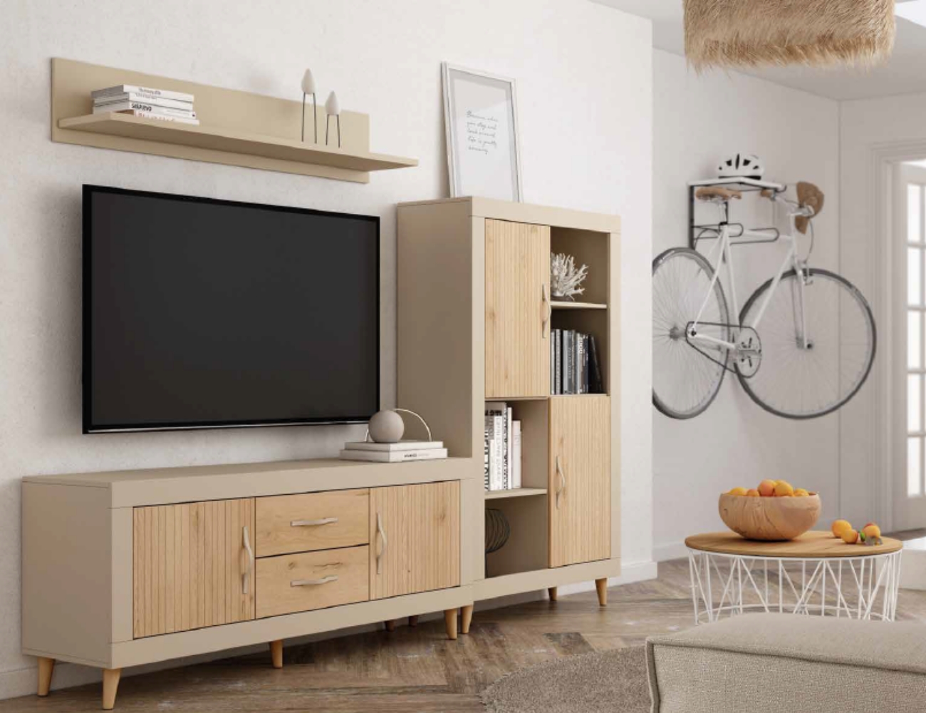 PVPR: 1075,39 € 645,23 €Esta composición es de estilo moderno, combina muebles de varios estilos. Los muebles, como las mesas, estanterías o estantes están disponibles con partes opcionales separadas.