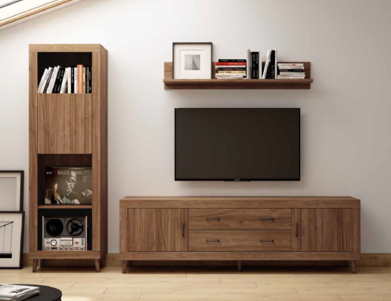 PVPR: 40,00 € 668,28 €Esta composición es de estilo moderno, combina muebles de varios estilos. Los muebles, como las mesas, estanterías o estantes están disponibles con partes opcionales separadas.