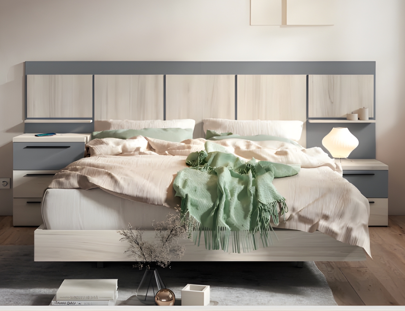 PVPR: 1022,98 € 613,79 €Este dormitorio es de estilo moderno, combina cabeceros de varios estilos. Los muebles, como las mesitas, cómodas o sinfonieres están disponibles con patas y sin patas
