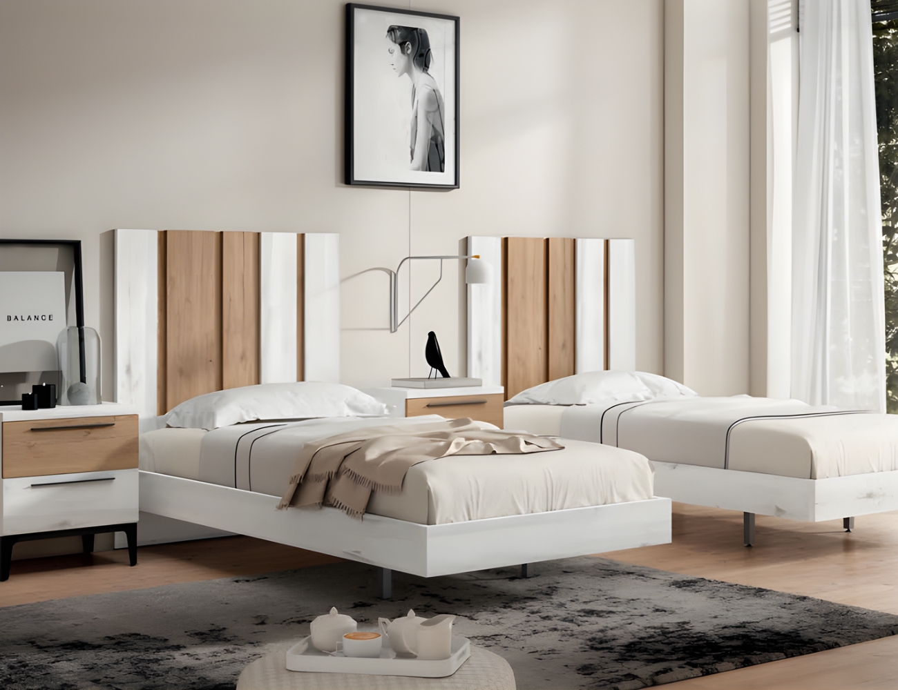 PVPR: 1324,53 € 794,72 €Este dormitorio es de estilo moderno, combina cabeceros de varios estilos. Los muebles, como las mesitas, cómodas o sinfonieres están disponibles con patas y sin patas
