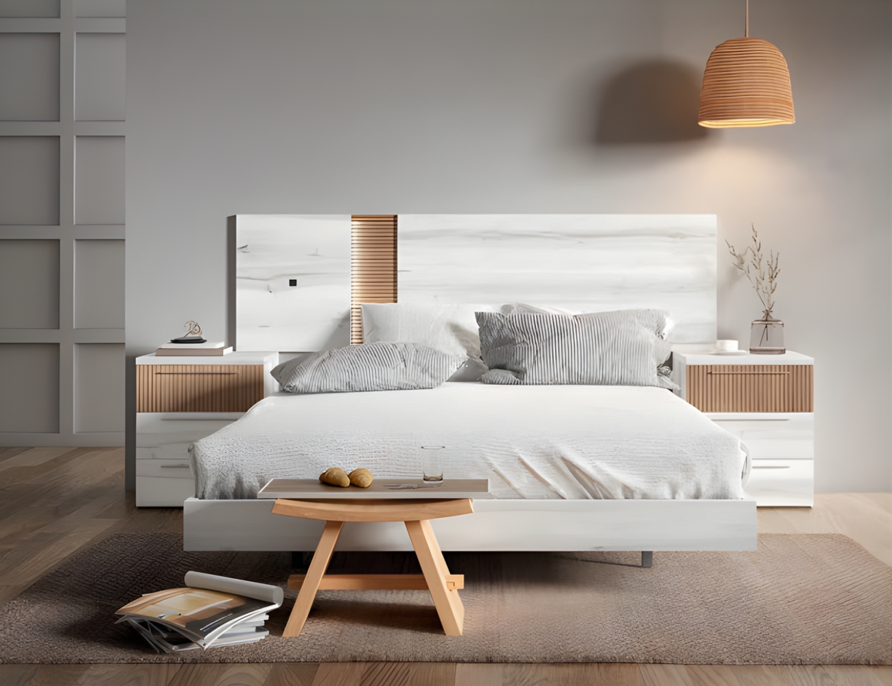 PVPR: 980,25 € 588,15 €Este dormitorio es de estilo moderno, combina cabeceros de varios estilos. Los muebles, como las mesitas, cómodas o sinfonieres están disponibles con patas y sin patas