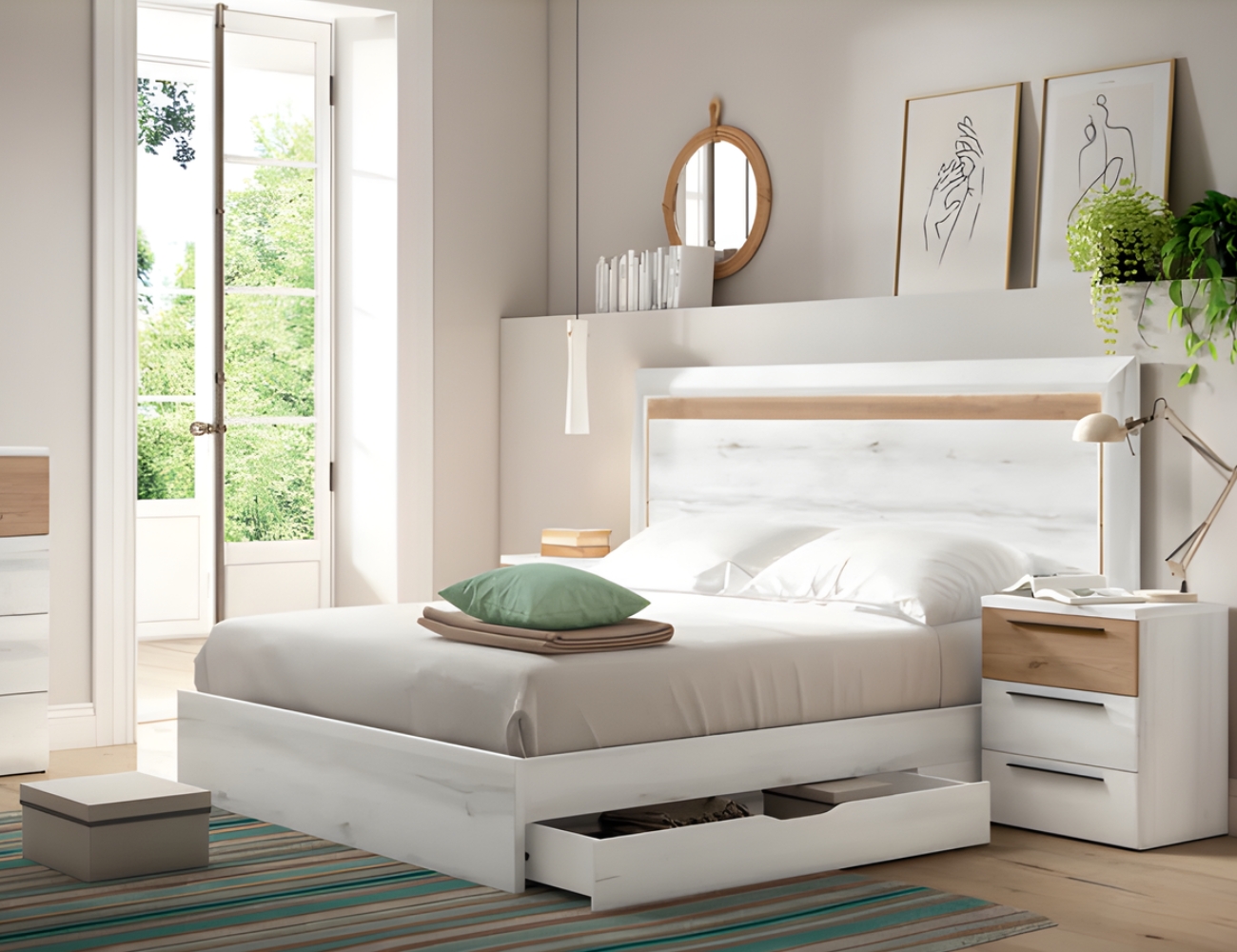 PVPR: 1317,13 € 790,28 €Este dormitorio es de estilo moderno, combina cabeceros de varios estilos. Los muebles, como las mesitas, cómodas o sinfonieres están disponibles con patas y sin patas