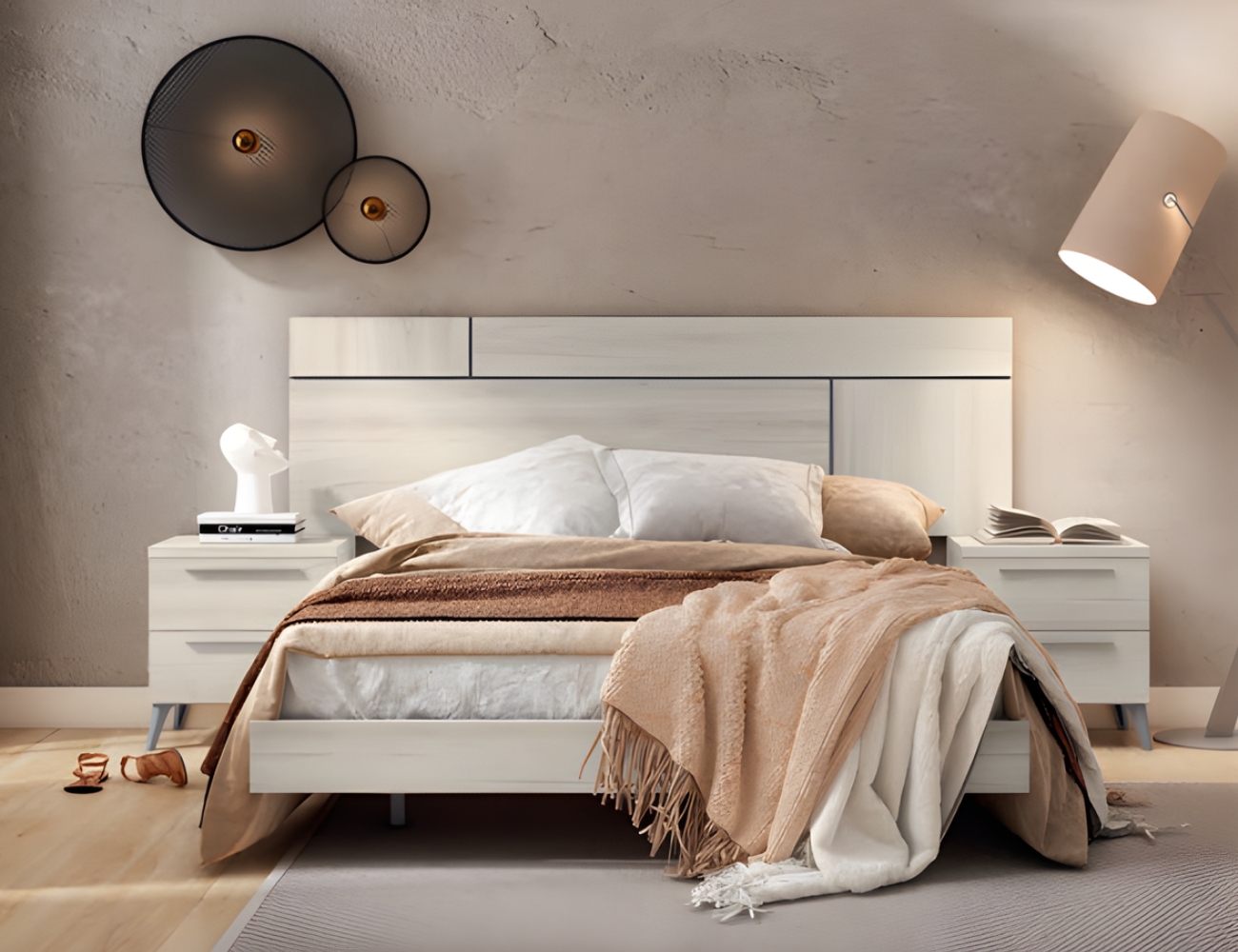 PVPR: 827,42 € 496,45 €Este dormitorio es de estilo moderno, combina cabeceros de varios estilos. Los muebles, como las mesitas, cómodas o sinfonieres están disponibles con patas y sin patas