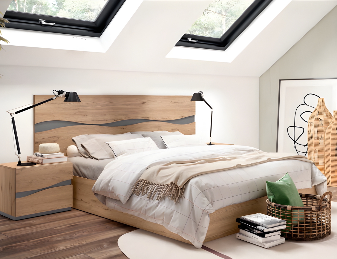 PVPR: 1368,08 € 820,85 €Este dormitorio es de estilo moderno, combina cabeceros de varios estilos. Los muebles, como las mesitas, cómodas o sinfonieres están disponibles con patas y sin patas