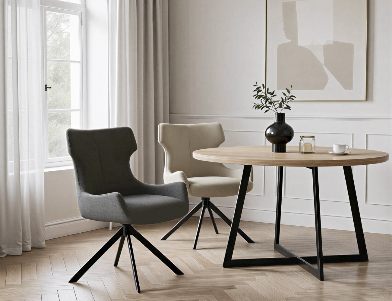 PVPR: 225,86 € 158,10 €Silla comedor giratoria tapizada en tejido.