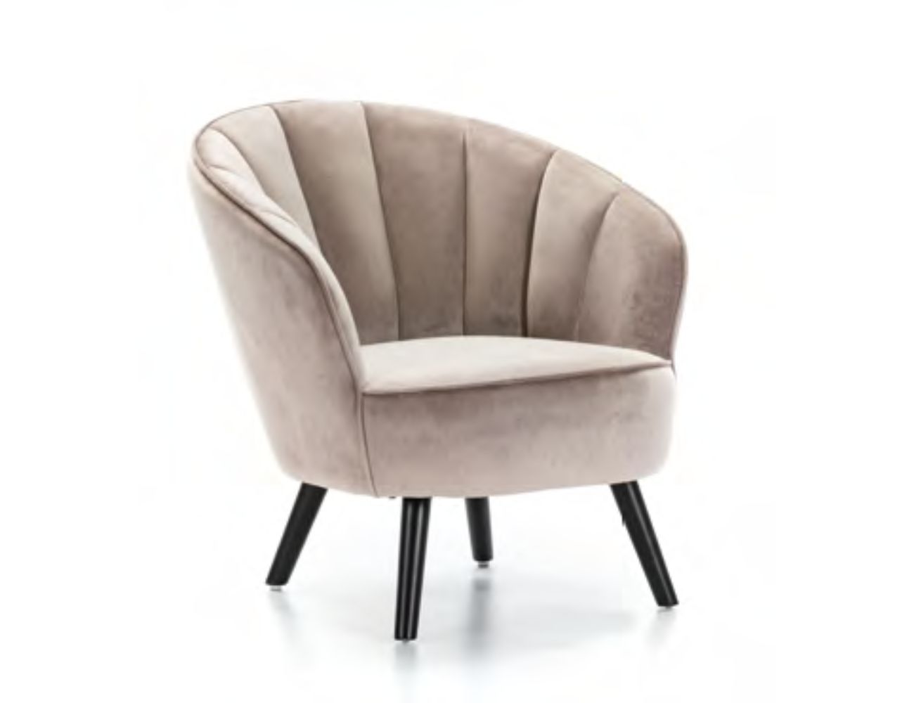 La butaca SL-895 es una pieza de diseño elegante y atemporal que destaca por su respaldo con diseño de pétalos o conchas, aportando un aire retro y sofisticado a cualquier estancia. Su estructura envolvente y acolchada está tapizada en un suave tejido de terciopelo que ofrece un brillo sutil y una textura de gran calidad. El diseño se completa con patas de madera robustas en acabado oscuro, que proporcionan una base sólida y un contraste estético refinado.