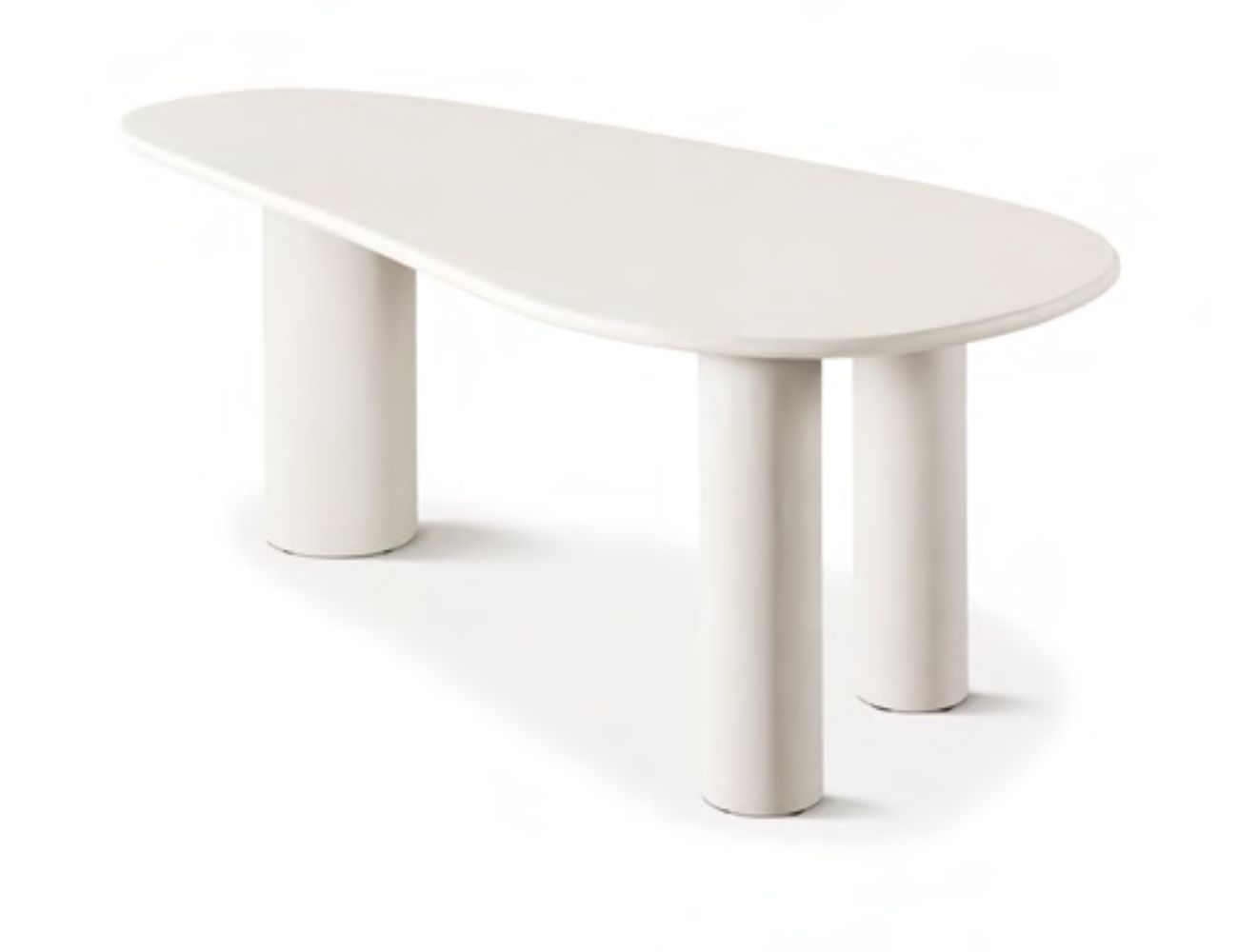 La mesa DT-525 es una pieza de diseño orgánico y minimalista que destaca por su silueta asimétrica y fluida. Su sobre presenta una forma redondeada irregular que rompe con las geometrías tradicionales para aportar dinamismo y un aire escultural al comedor. La robustez del diseño se manifiesta en sus tres patas cilíndricas de gran diámetro, que proporcionan una estabilidad excepcional y una estética arquitectónica contemporánea.