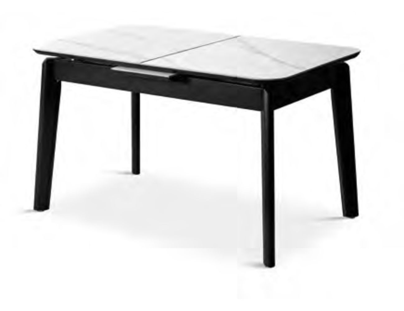 La mesa DT-515 extensible es una pieza que equilibra la calidez de los materiales naturales con la resistencia de los acabados modernos. Su diseño funcional presenta un sobre de porcelánico blanco con un suave veteado, proporcionando una superficie elegante y altamente duradera. La estructura se asienta sobre patas de madera maciza en un acabado oscuro, lo que garantiza una gran estabilidad y aporta un contraste visual sobrio y sofisticado, ideal para comedores de estilo nórdico o contemporáneo.