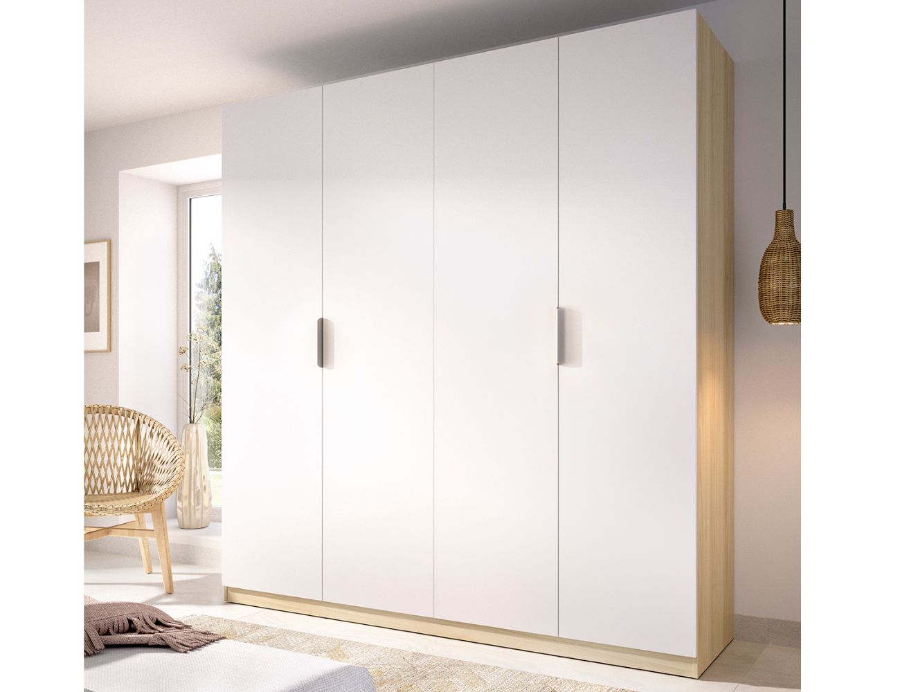 PVPR: 521,29 € 312,77 €Armario de cuatro puertas dividido en dos partes, con una barra y un estante en cada una de ellas.