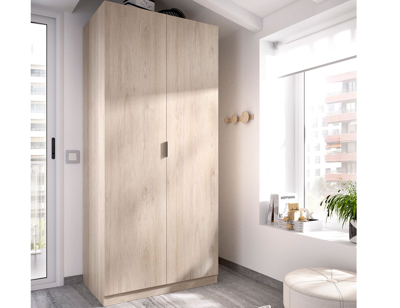 PVPR: 228,96 € 137,38 €Armario de dos puertas batientes con una barra y un estante en su interior.