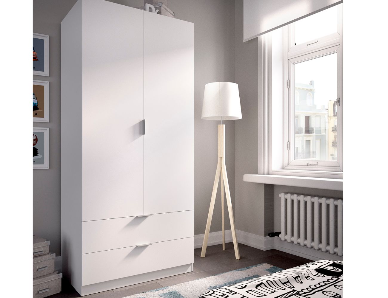 PVPR: 254,61 € 152,77 €Armario de dos puertas batientes con una barra en su interior y dos cajones exteriores.