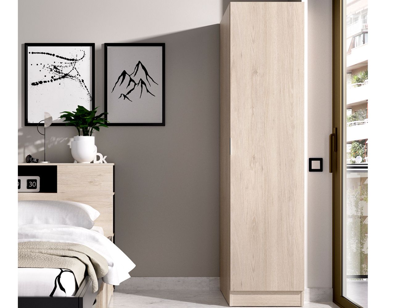 PVPR: 206,74 € 124,04 €Armario de una puerta con una barra y dos estantes en el interior.