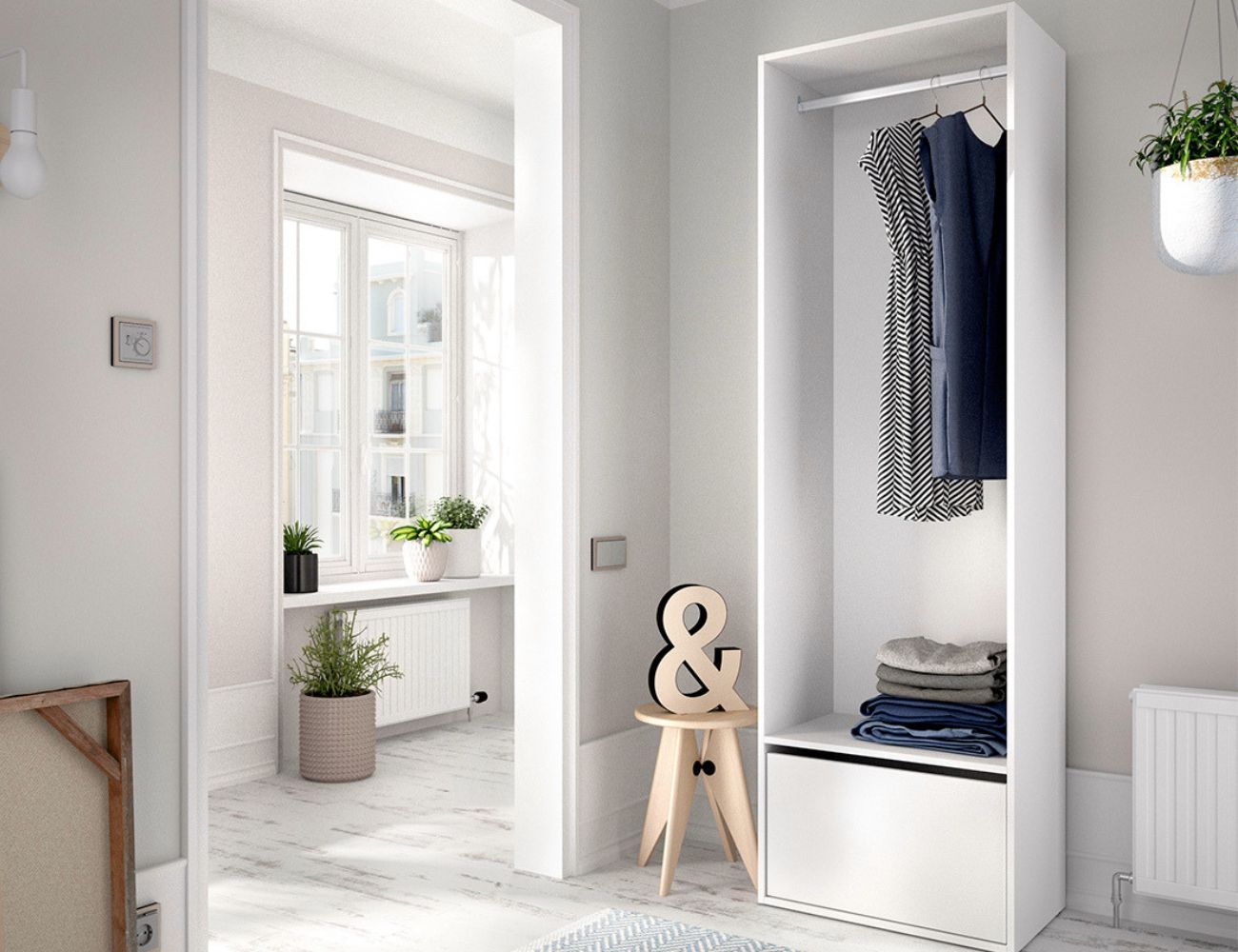 PVPR: 215,16 € 129,10 €Módulo vestidor compuesto por hueco con barra de colgar en parte superior y puerta con zapatero en la inferior.