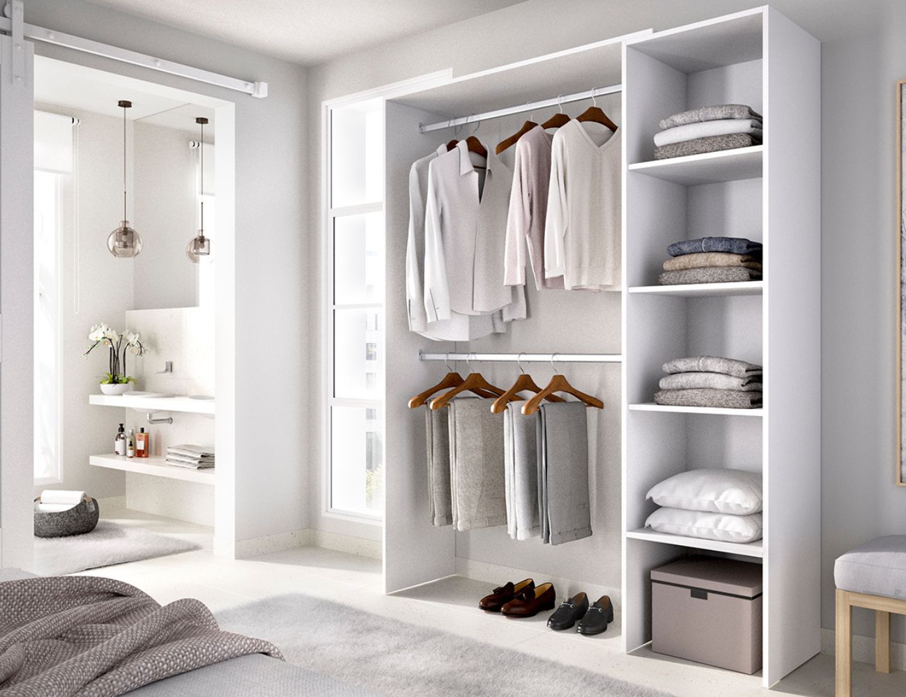 PVPR: 215,38 € 129,23 €Vestidor adaptable cortando las barras. Está compuesto por dos barras de colgar y cuatro estantes