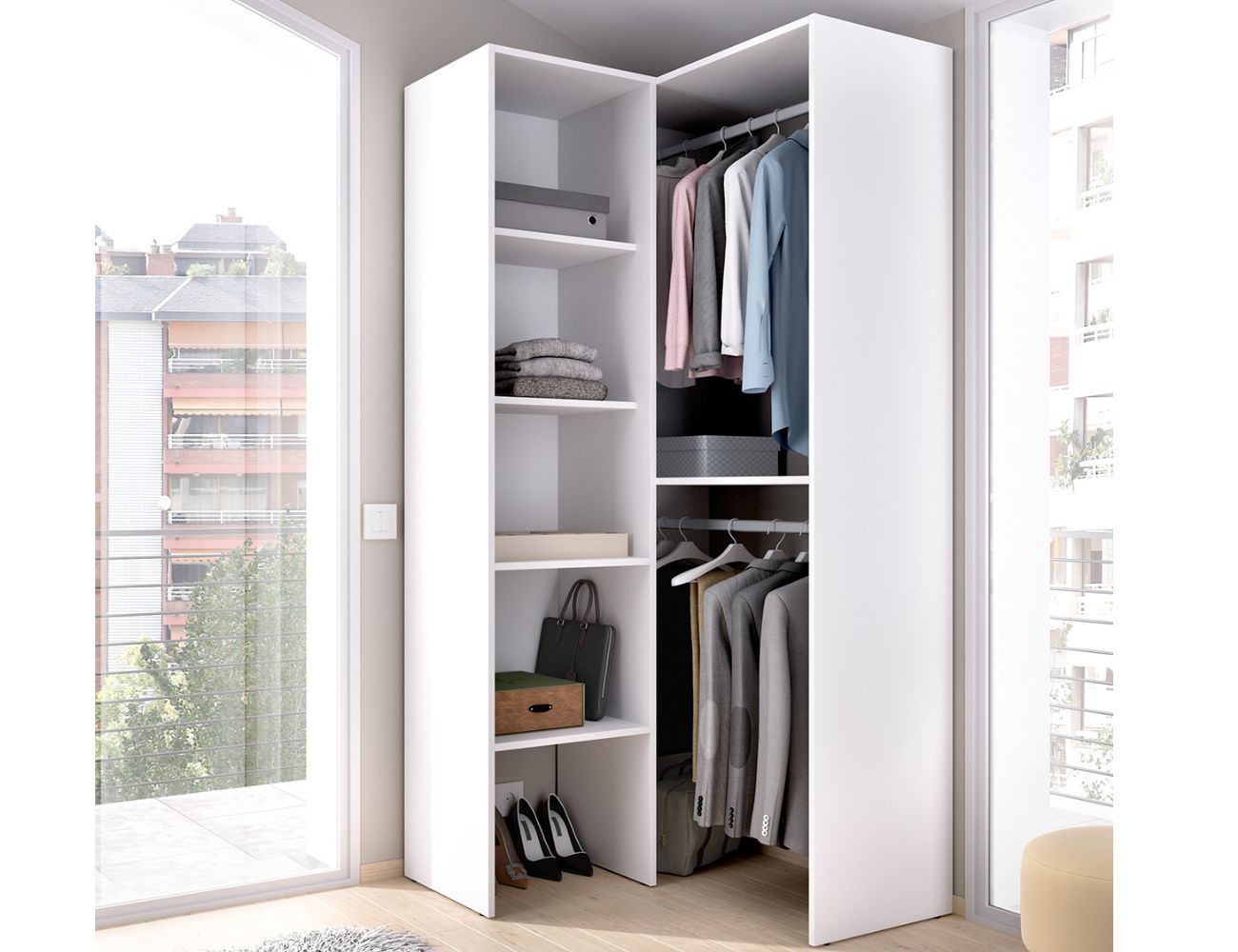 PVPR: 274,10 € 164,46 €Vestidor de rincón. Está compuesto por dos barras de colgar con un estante y una columna con cuatro estantes.