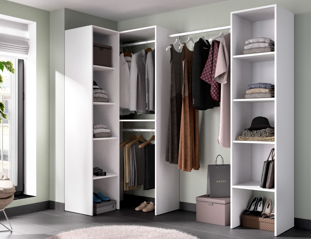PVPR: 417,53 € 250,52 €Composición vestidor de rincón. Está formada por los Kits vestidor K17143 + K15943.