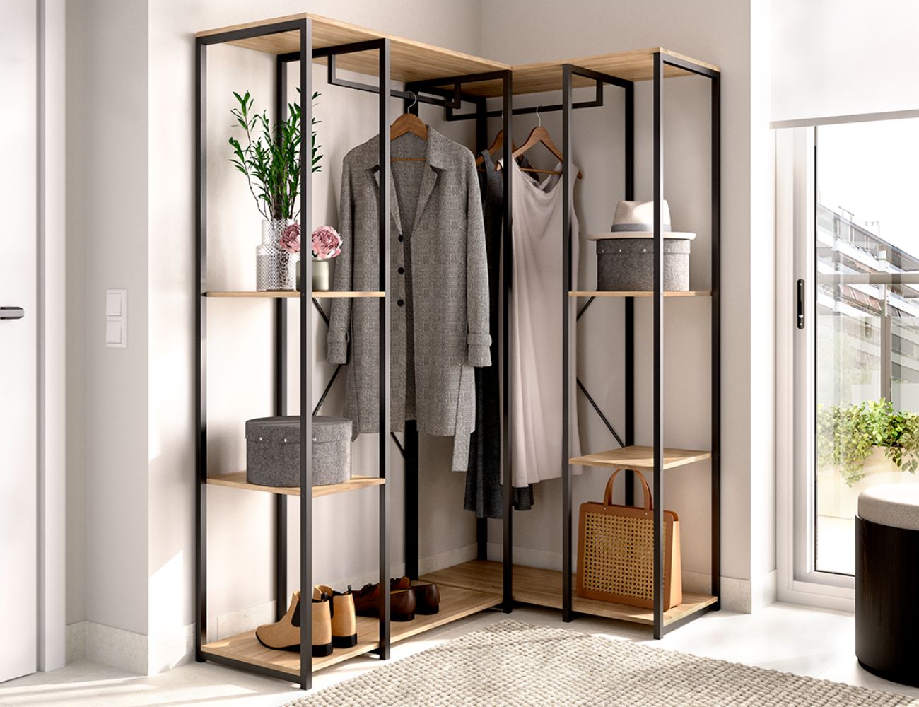 PVPR: 197,78 € 118,67 €Vestidor metal de rincon compuesto por dos modulos de 90 cm