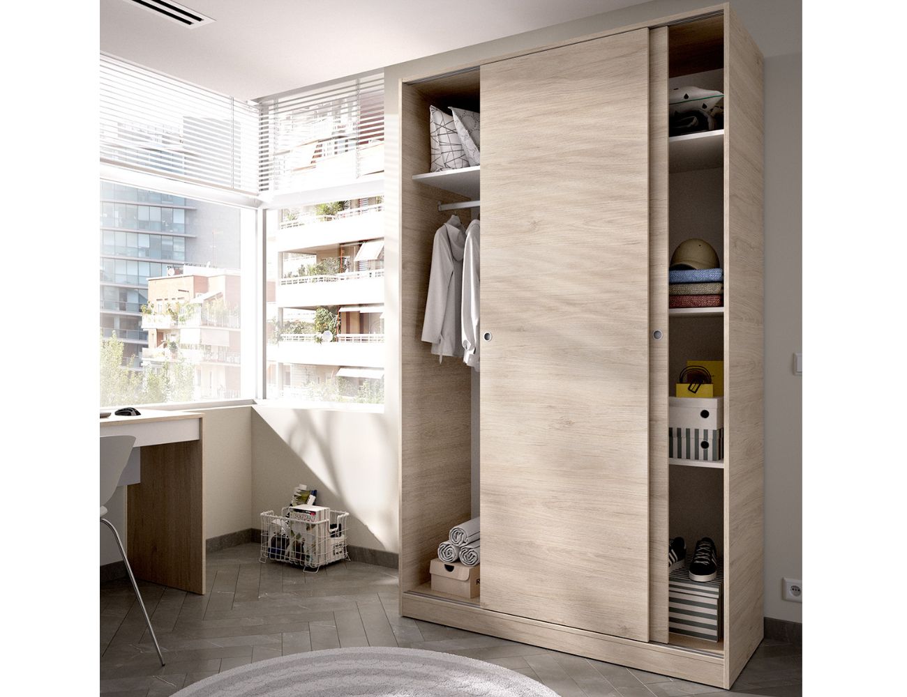 PVPR: 414,72 € 248,83 €Armario de dos puertas correderas con una barra y tres estantes en el interior Natural