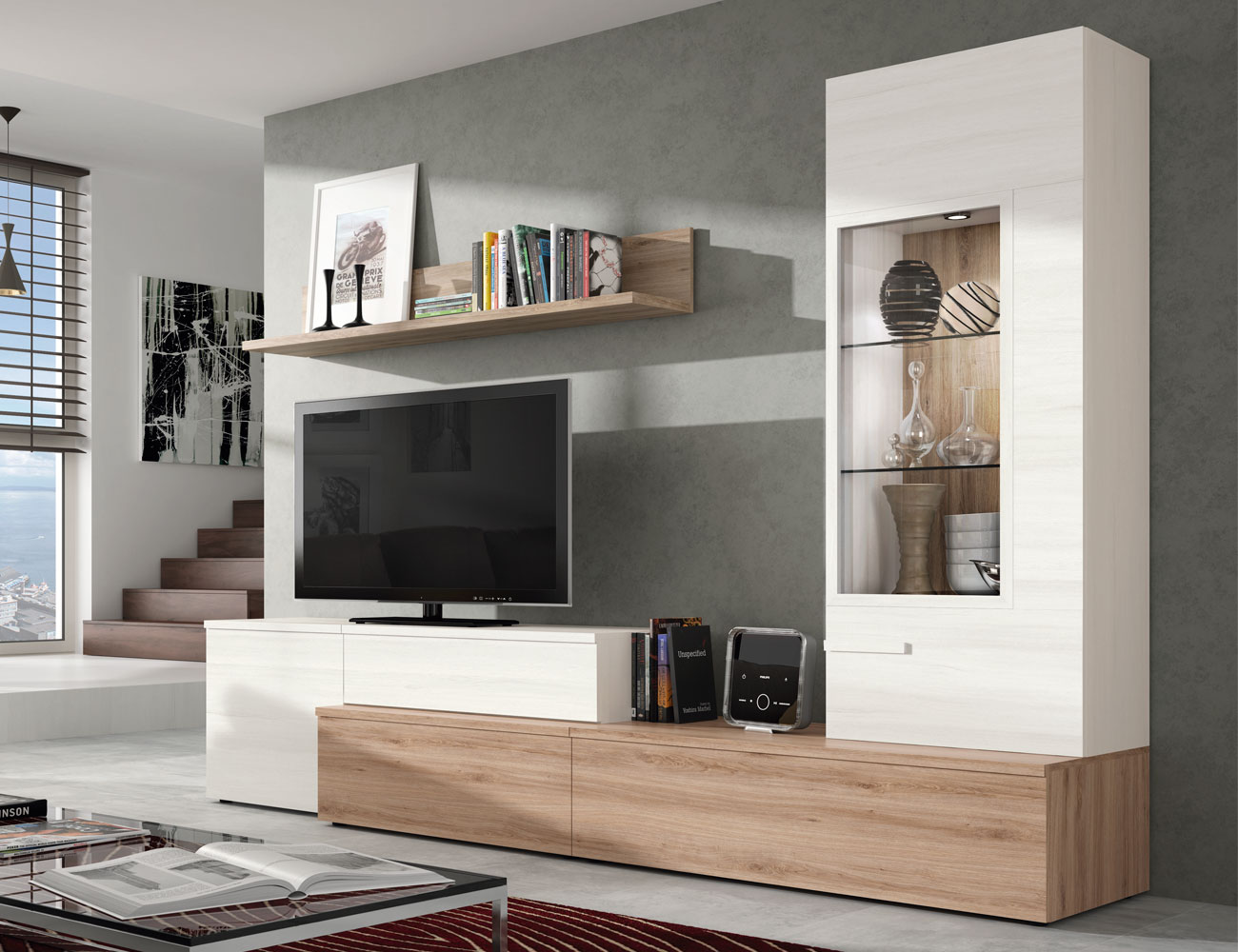 PVPR: 746,30 € 818,99 €Esta colección de muebles sigue un criterio por la innovación, diseño, creatividad y calidad, respondiendo a las actuales tendencias del mercadopara satisfacer en las prestaciones más deseadas del cliente y la competitividad de precios. Inspirado por el respeto a la naturaleza, esta colección combina colores nobles resaltando las vetas/mallas de la propia madera y manteniendo líneas minimalistas que permiten elegir la composición más atractiva. Estos muebles destacan por la combinación de colores de las traseras y marcos en vitrinas y módulos auxiliares, además de incorporar un nuevo módulo forma "L" que modificia la altura del soport de TV, incorpora detalles funcionales, como leds y estantes de cristal en sus módulos y vitrinas, y mejoras en sus acabados. Los colores de esta novedosa colección están basados en la propia materia viva, matienen la placidez decorativa de la estancia envolviéndote con la naturaleza.