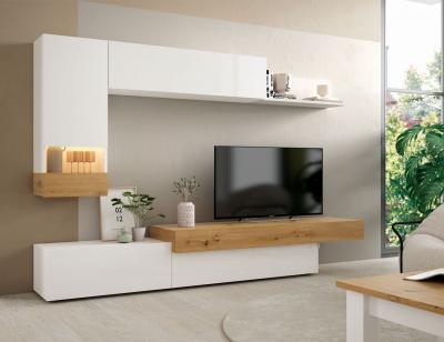 Los muebles de salón de estilo moderno deluxe al igual que los tradicionales poseen una gran belleza y se presentan en colores actuales como el Cambrian, vintage, Ártico, Nelson, Pekin entre otros. Estos muebles también pueden presentar acabados en blanco mate o brillo. Estos muebles están fabricados en melanina prensada texturizada, esta melanina proporciona una gran belleza al mueble y proporcionando al mismo un estilo moderno y exclusivo.